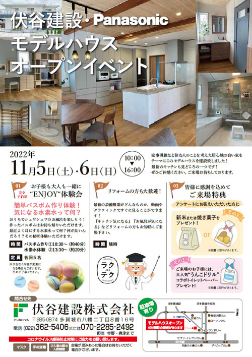伏谷建設・Panasonic モデルハウスオープンイベントを11月5日(土)6日(日)に開催します。